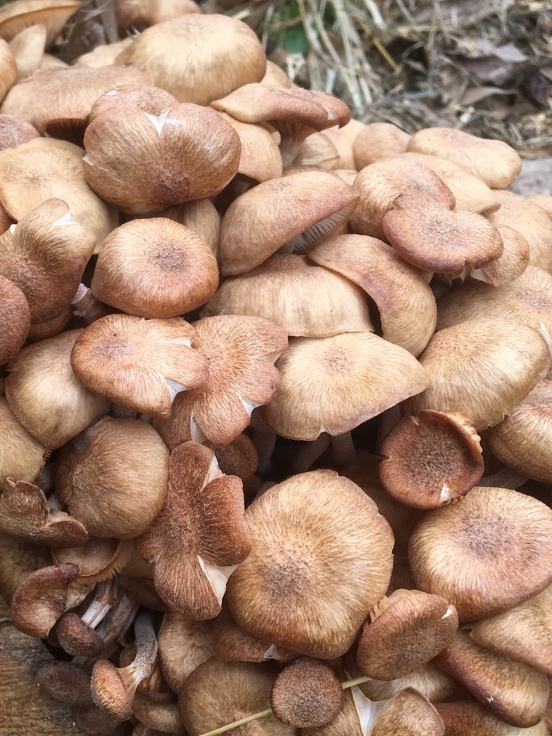 雨上がりの切り株にワンサカ生えていた。毒性は無いが、食べ過ぎると中毒を起こすし、よく似ている毒キノコもあるので要注意です。